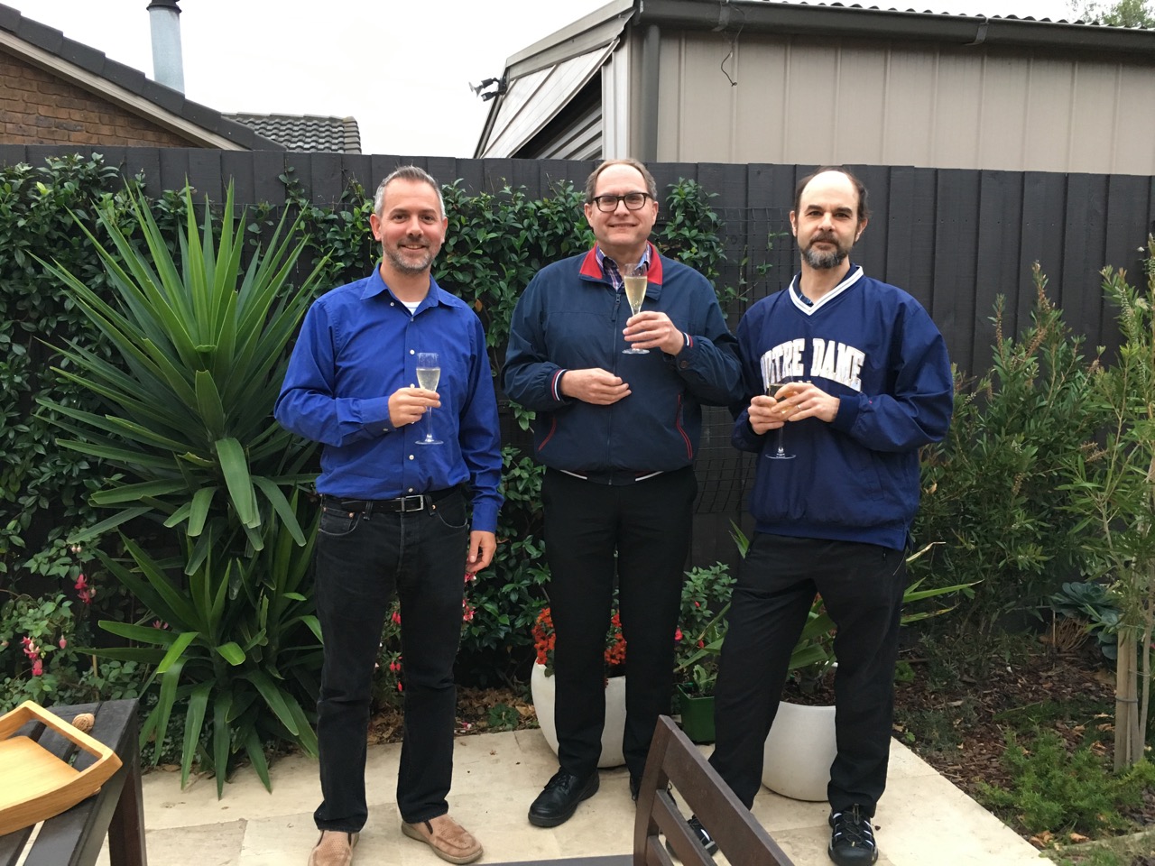 Champagne celebration on the same theme, at Peter Skands' house outside Melbourne, on 10 April 2019.